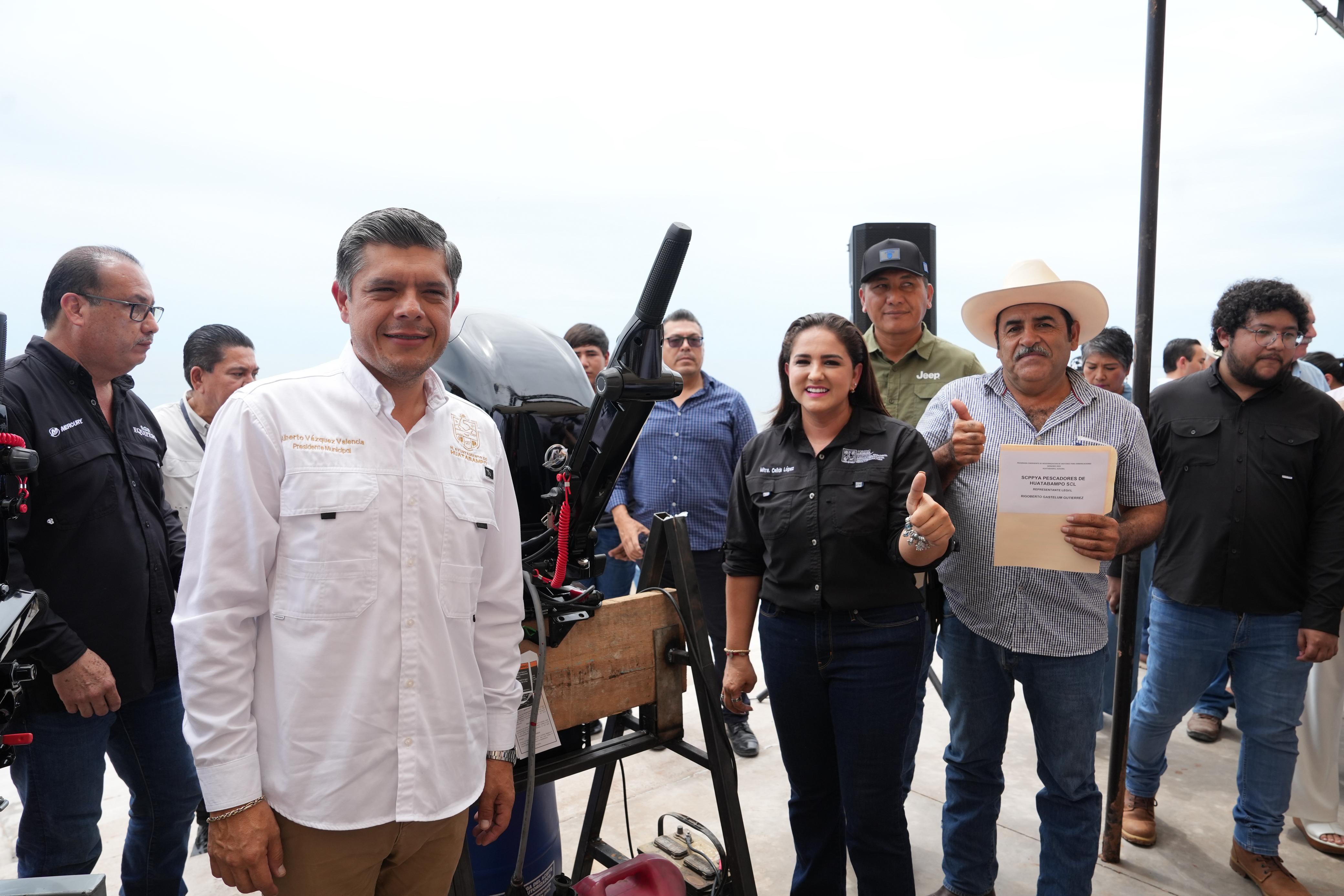 Huatabampito, Sonora; 3 de septiembre de 2025.- Para fortalecer la productividad y seguridad en la actividad pesquera, el gobernador Alfonso Durazo, a través de la Secretaría de Agricultura, Ganadería, Recursos Hidráulicos, Pesca y Acuacultura (Sagarhpa), entregó en Huatabampito, en una primera etapa, 156 motores fuera de borda a embarcaciones menores, como parte del Programa Emergente de Modernización de Motores.