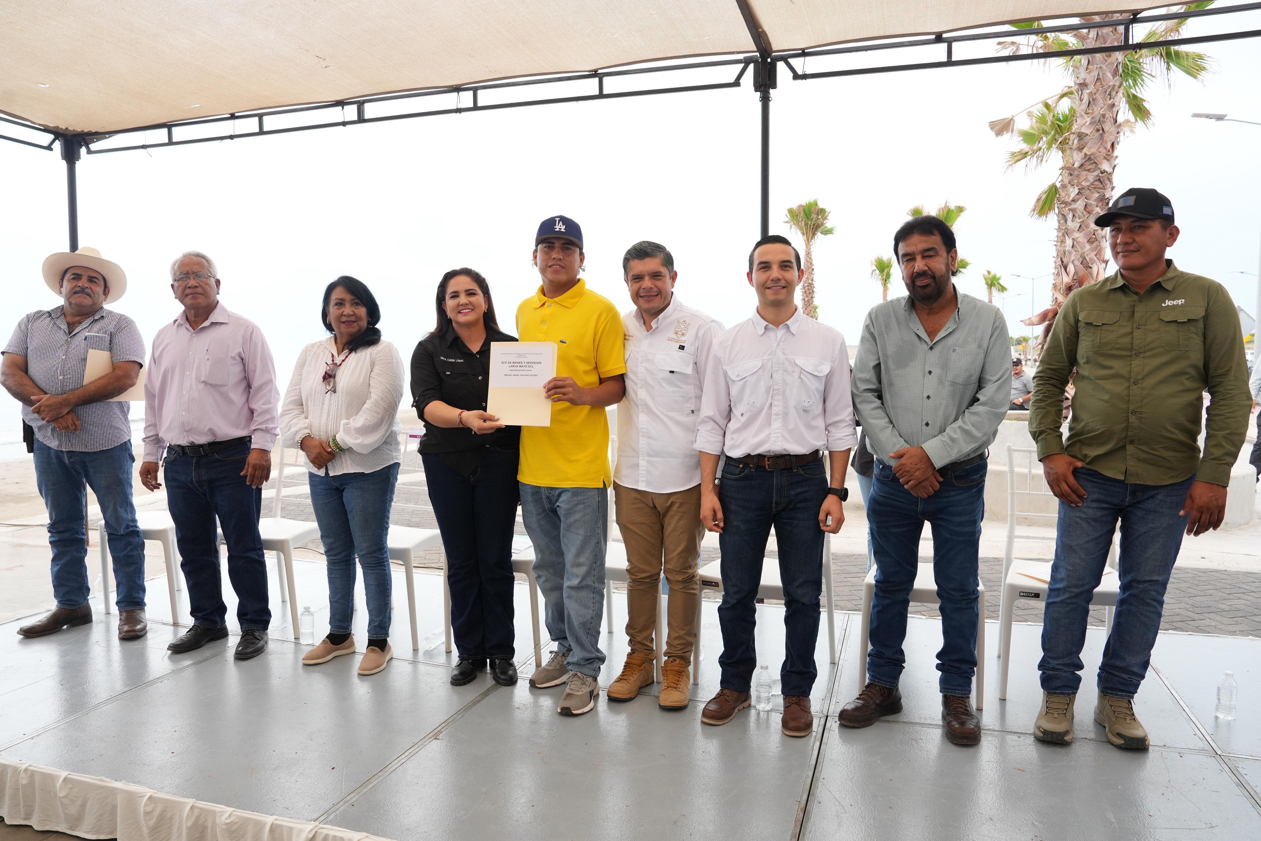 En representación de los pescadores, Rigoberto Gastélum Gutiérrez y Guadalupe Trinidad Espero Valenzuela, presidente de la Sociedad Cooperativa Capitán Jack del Paredón, reconocieron que la renovación de motores representa mayor seguridad en altamar, ahorro de combustible y mayor bienestar para las familias que dependen de la pesca.